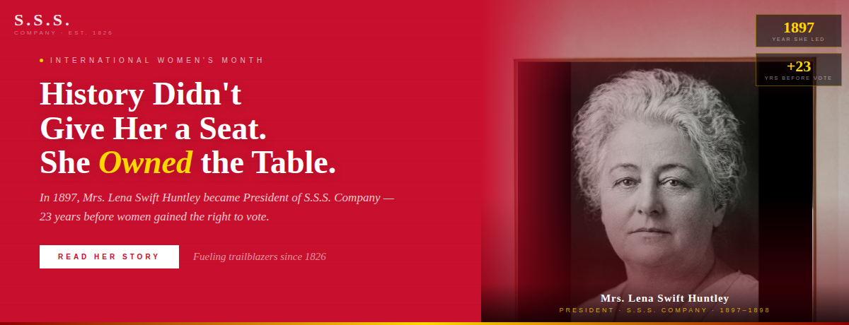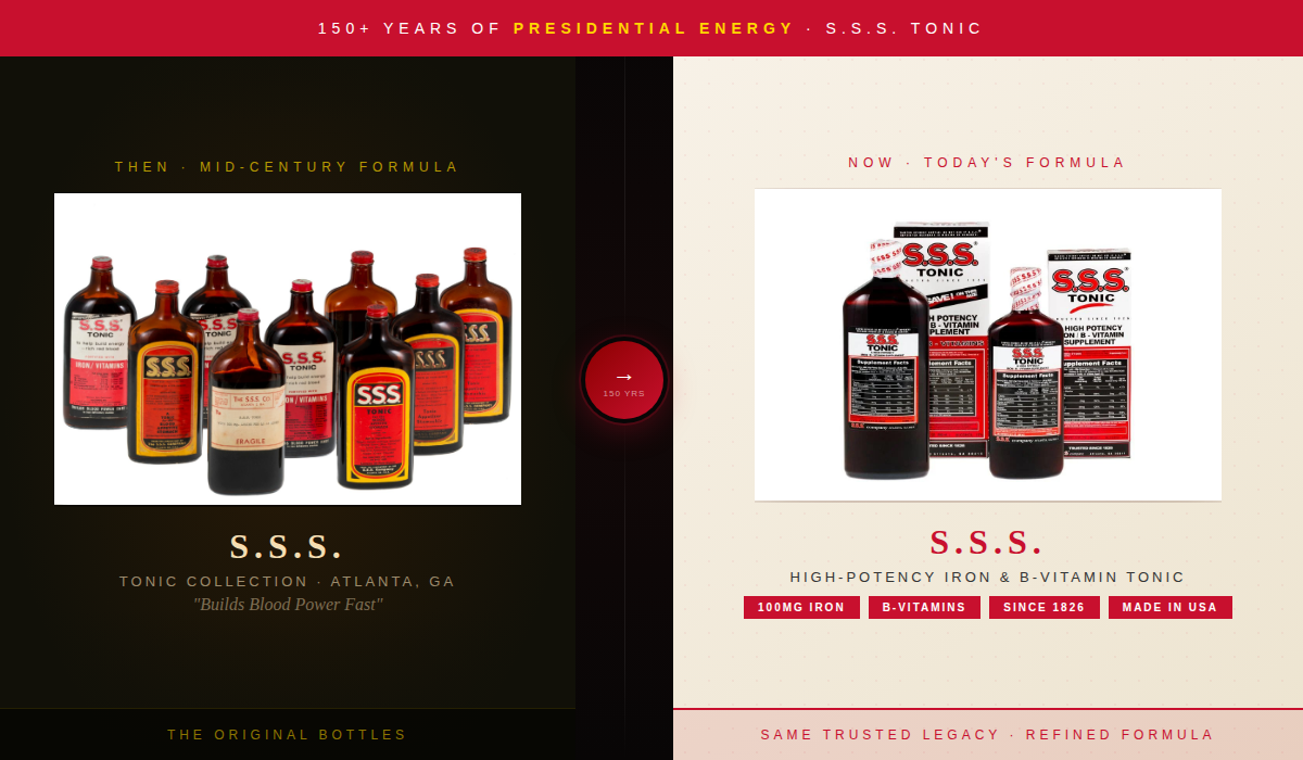At S.S.S., we’ve been fueling that Presidential Energy for over 150 years. Our high-potency Iron and B-Vitamin Tonic powers the modern trailblazer, the woman juggling a career, a family, and a legacy, just like Lena did.