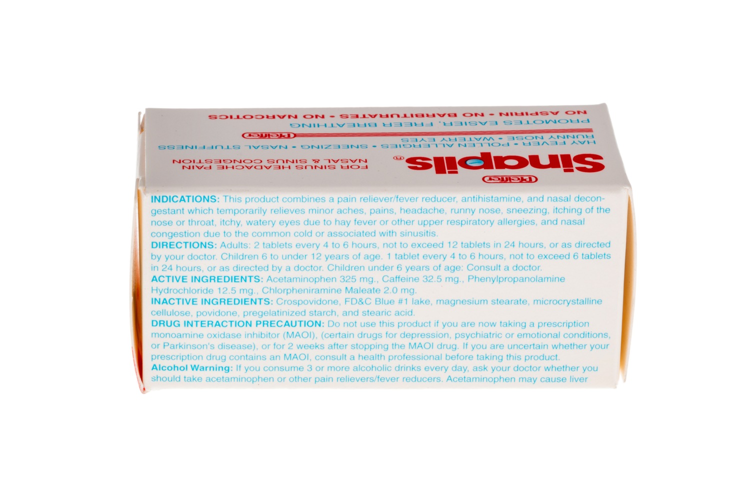 ACTIVE INGREDIENTS: Acetaminophen 325 mg., Caffeine 32.5 mg., Phenylpropanolamine Hydrochloride 12.5 mg., Chlorpheniramine Maleate 2.0 mg. INACTIVE INGREDIENTS: Crospovidone, FD&C Blue #1 lake, magnesium stearate, microcrystalline cellulose, povidone, pregelatinized starch, and stearic acid.Warnings: