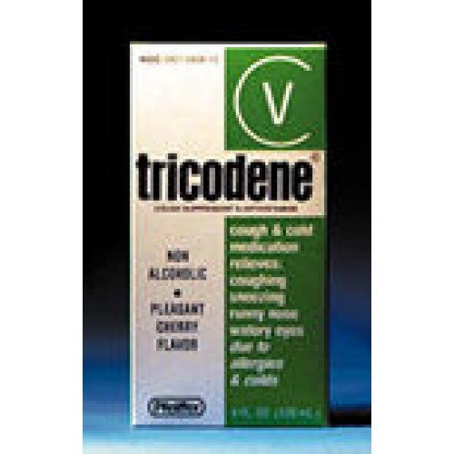 This product countains a cough suppresant which temporarily calms the cough control center and relieves coughing associated with the common cold, and an antihistamine which dries runny nose, relieves sneezing, itching of the nose or throat, and itchy, watery eyes due to hay fever of other upper respiratory allergies. May be habit forming.