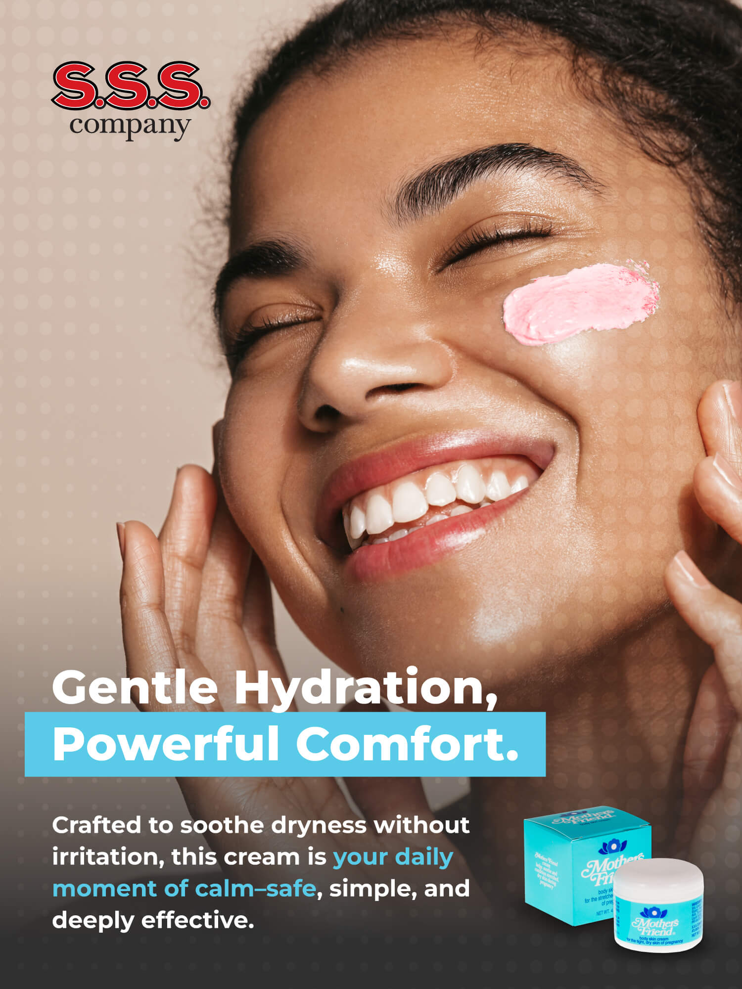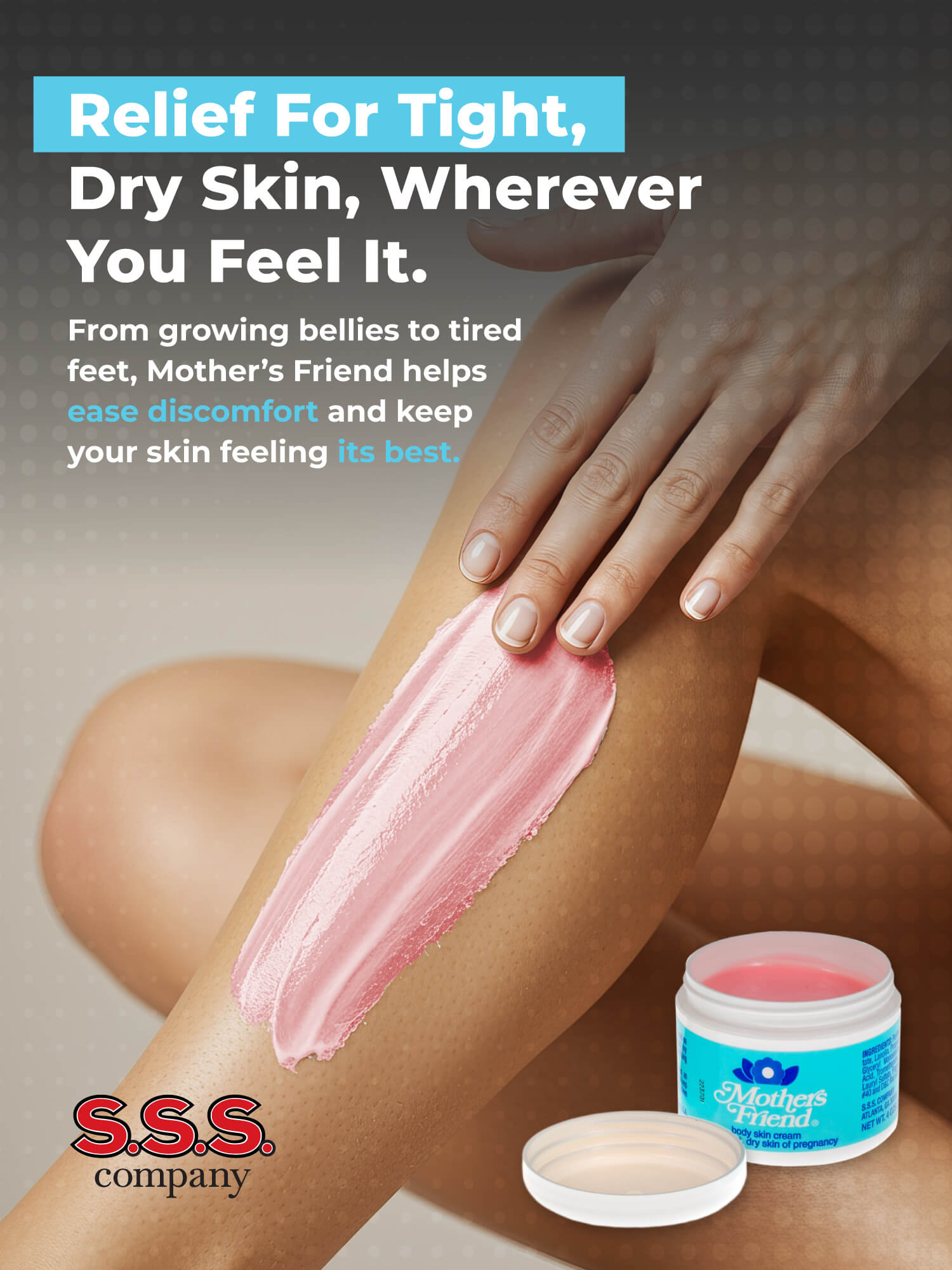 Mother’s Friend Cream is proudly made in the USA by S.S.S. Company, using high-quality, trusted ingredients.