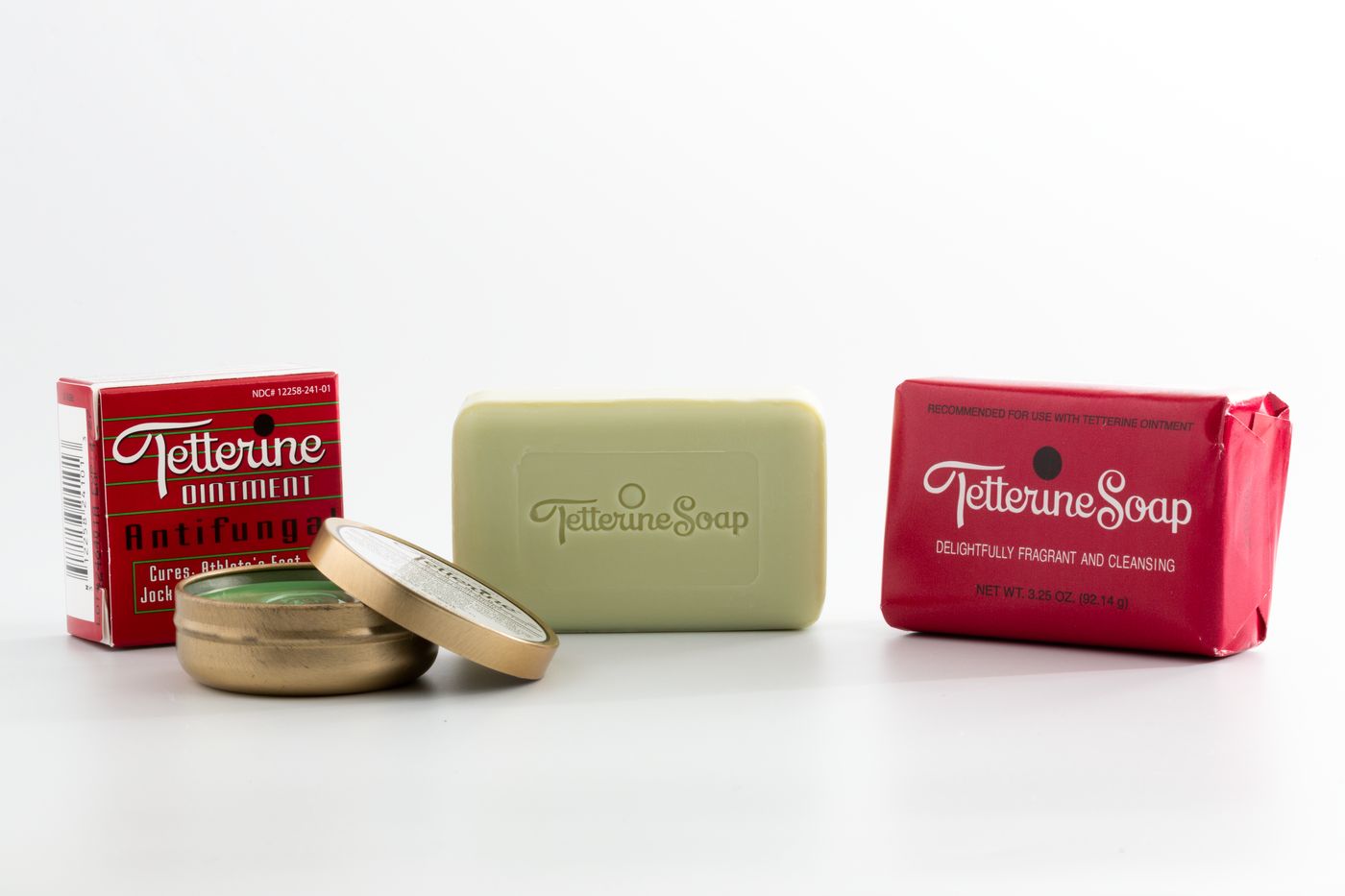 The Classic Tetterine Treatment System pairs the traditional cleansing care of Tetterine Soap with the protective antifungal power of Tetterine Antifungal Ointment (Green).